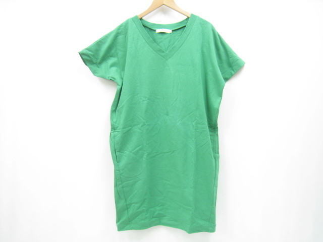 - MOUSSY マウジー Vネック コットン ワンピース 半袖 グリーン 緑 F フリーサイズ