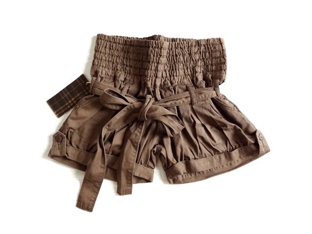 - 新品 mighty ハイウエスト ショートパンツ リボン ベルト 茶 コットン ブラウン フリーサイズ ハイライズ