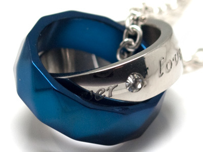 - ★人気★変色無★肌に優しい★金属アレルギー&温泉&海水浴ご使用OK★ステンレスペンダント★2連リング&ブルー&ジルコニア