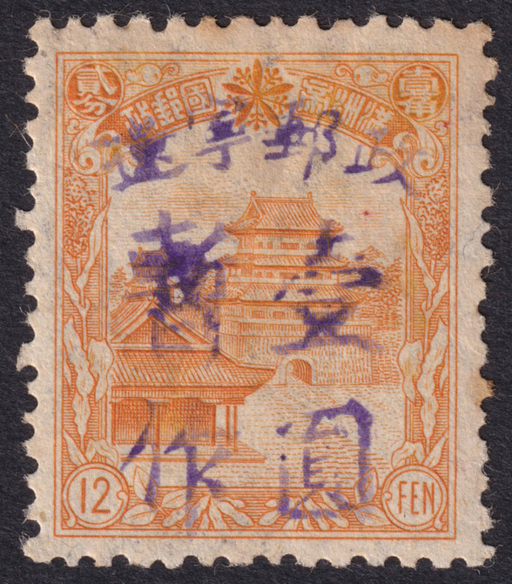 - 中国切手 解放区 東北地方郵政 遼寧郵政 1946年2月 本渓湖加刷改値(満州) $1/12c 未使用 Yang:NE210 SC:2L2 z13289