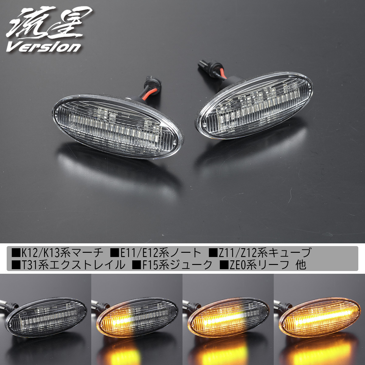 - [流れるウインカー] C11 ティーダ 中/後期 LED クリスタル サイドマーカー [クリアレンズ] 流星Ver. カプラーオン 純正交換 シーケンシャル