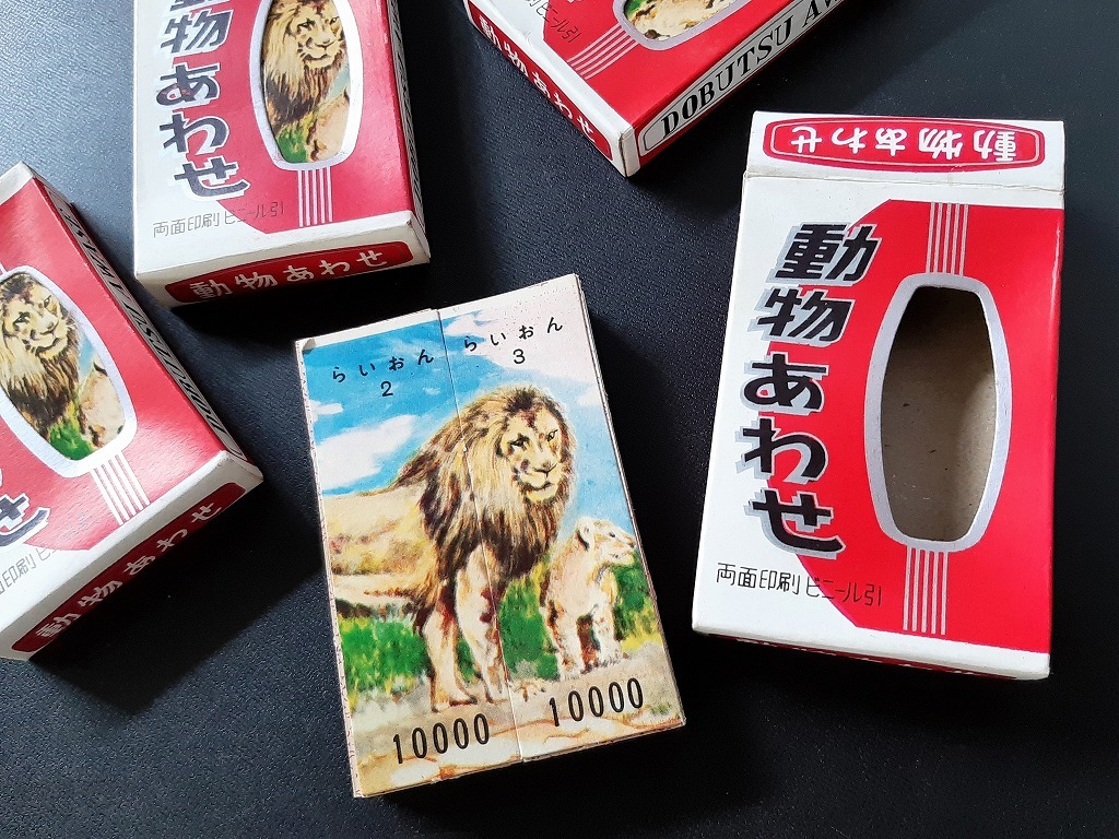 > らいおん くろひょう 総天然色 動物 絵合わせ 当時物 未使用 4セット まとめて!☆ 両面印刷 ビニール引 YAMAKATSU TOKYO JAPAN 昭和レトロ