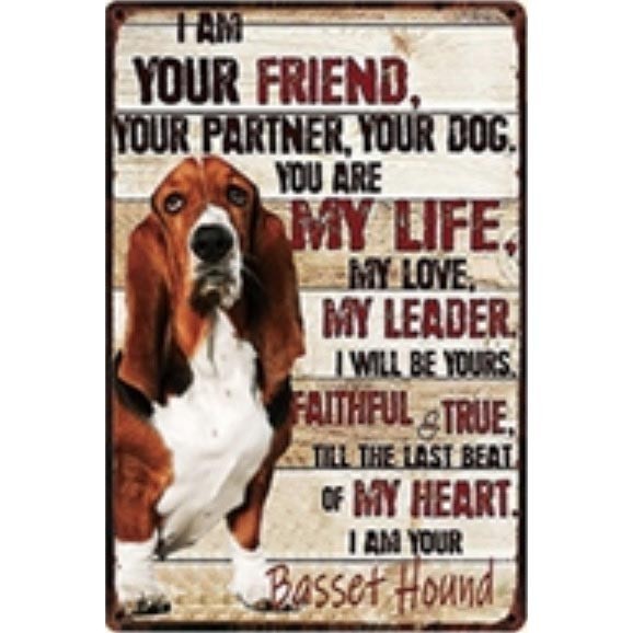 - A2097 メタル サイン 金属 製 ブリキ 看板 プレート アート パネル 店 注意 動物 ペット 犬 バセット ハウンド【4998】