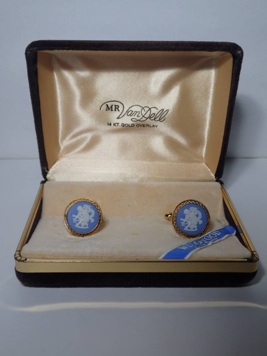 - WEDGWOOD ウェッジウッド カフス カフスボタン 天使 ブルー×ゴールド 箱あり 1/20 14K.G.F.