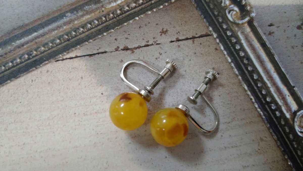 - □べっ甲色×茶色MIX□丸いイヤリング□
