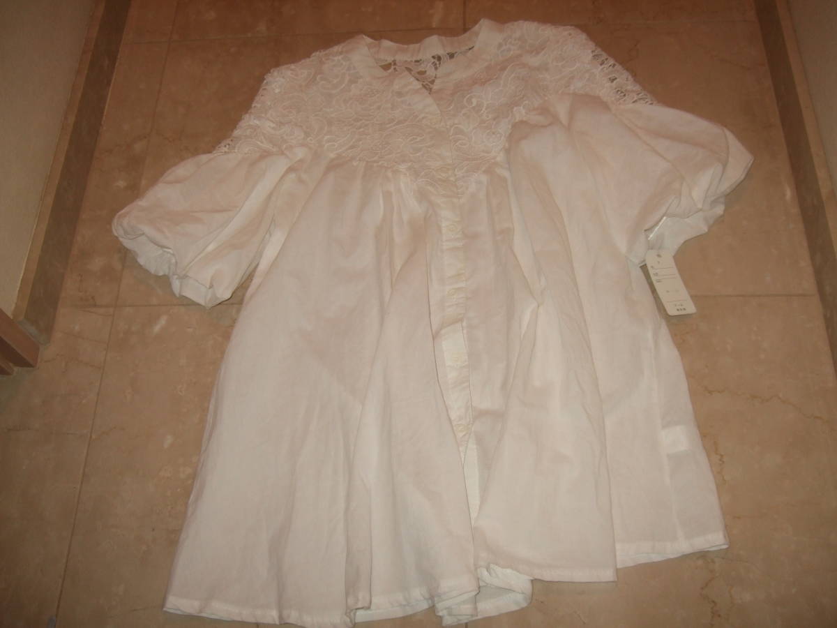- 新品タグ付即決☆ミセス向き バルーン袖レースブラウス☆白