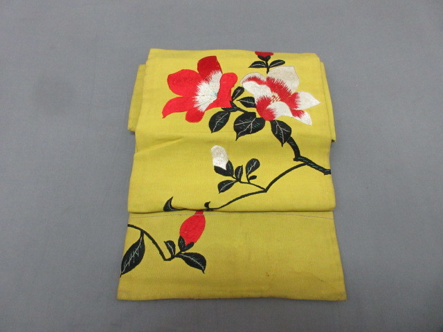 - 【政】29790 刺繍帯 花 和装小物 和服