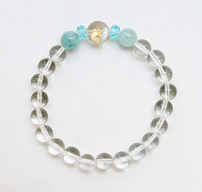- ミルキーアクアマリン・水晶 「守りご本尊」ブレスレット【酉年】18cm