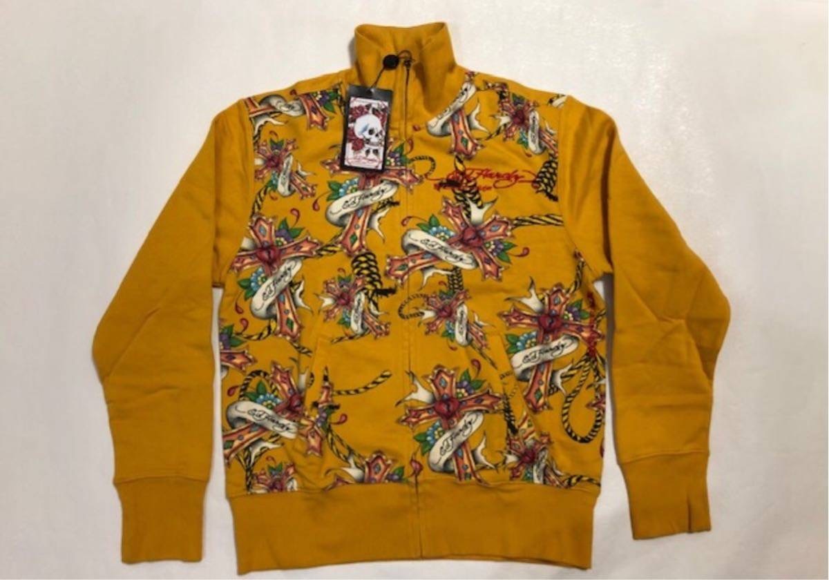 > 【新品タグ付き、正規品、本物】 Ed Hardy エド ハーディー ジップアップ ジャージ ジャケット 刺繍ロゴ入り Lサイズ マスタード色