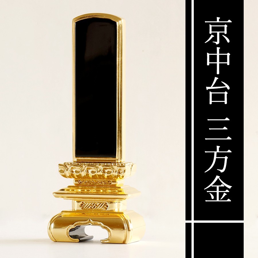 - 位牌 本金箔使用 上 京中台 三面金 3寸 ■ 文字 彫付き モダン 塗り位牌 高さ15.3cm