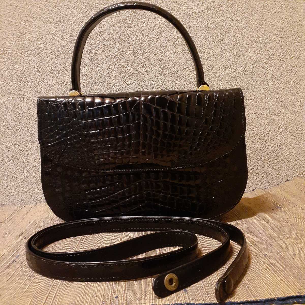 - クロコダイル ポロサス バッグ 黒 約H27cm×25cm×6cm