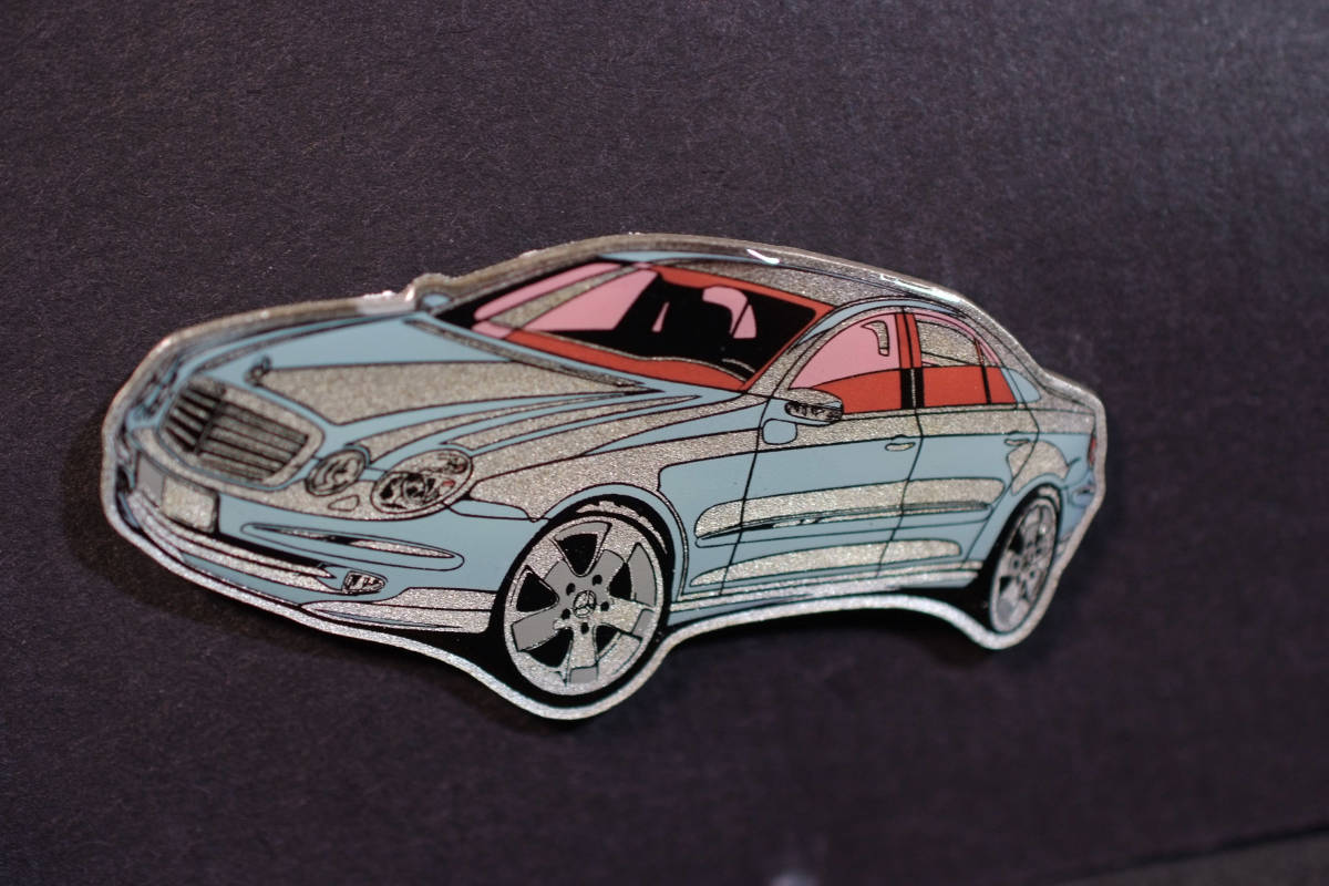 - 〇 Mercedes ピンバッジ Eクラス W211 ブルー W40mm 純正台紙付 benz ocitye 独メルセデスベンツ E240 E280 E320 E500 E55amg