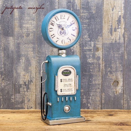 > テーブルクロック ガスポンプ ブルー ( GS SERVICE ) アンティーク調 置時計 パタミン 時計 インテリア 店舗什器