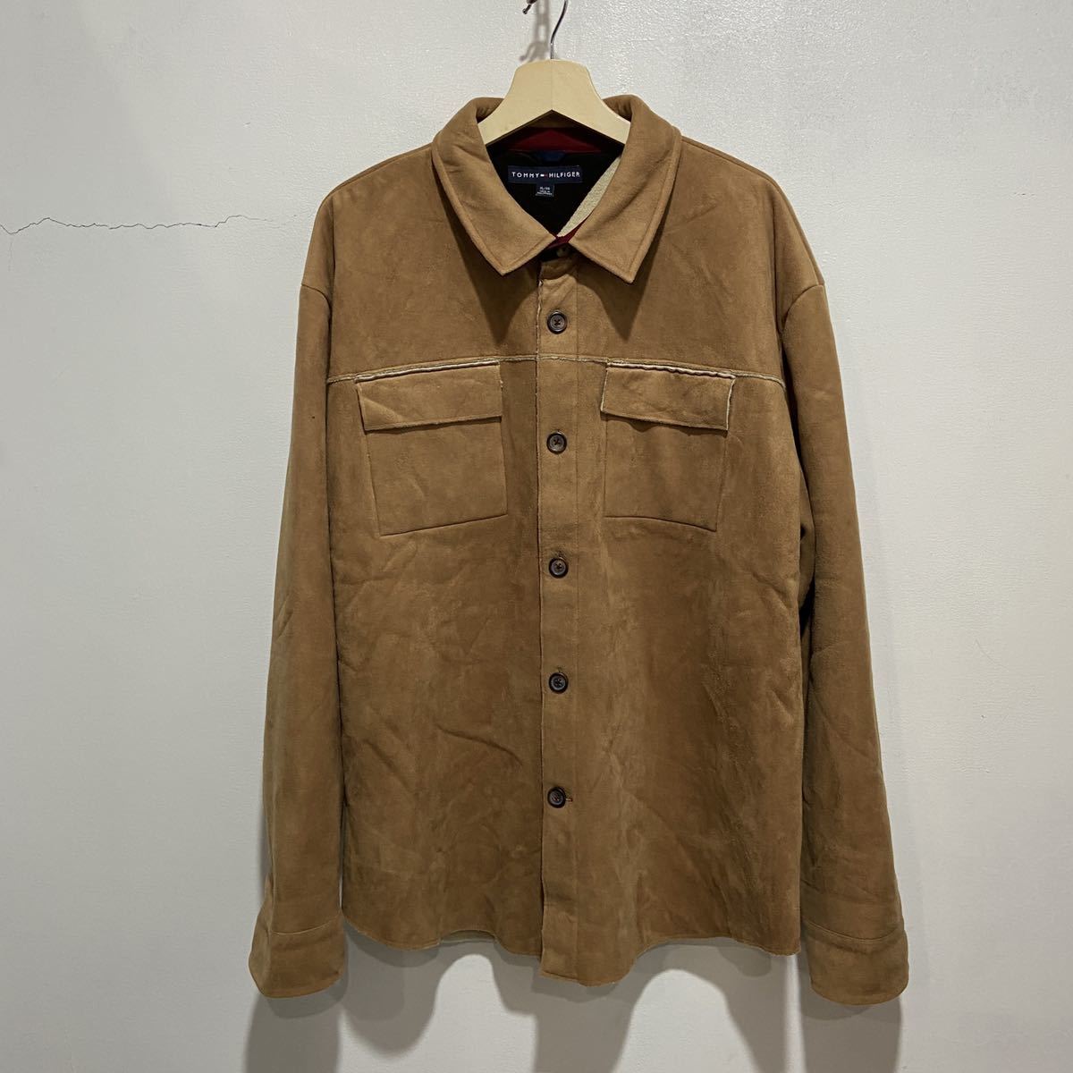 > ☆送料無料☆ TOMMY HILFIGER☆フェイクムートン長袖シャツ☆XL☆ブラウンベージュ