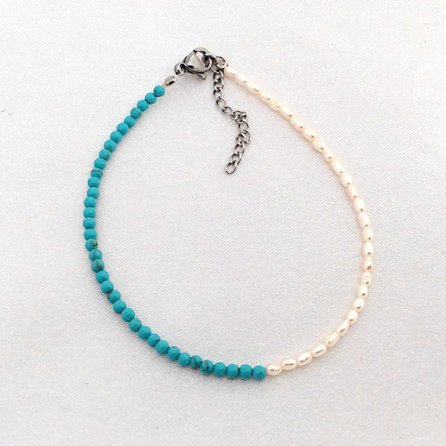 - 淡水真珠 淡水パール 真珠ビーズ トルコ石風 人工石 ブルーストーン ブレスレット
