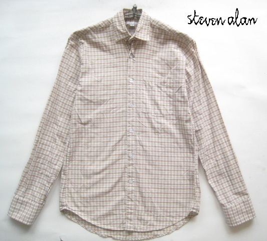 - 美品USA製!!スティーブンアラン Steven Alan*胸ポケット付きチェック柄長袖シャツ XS 実寸S グレー×茶×ベージュ×黄