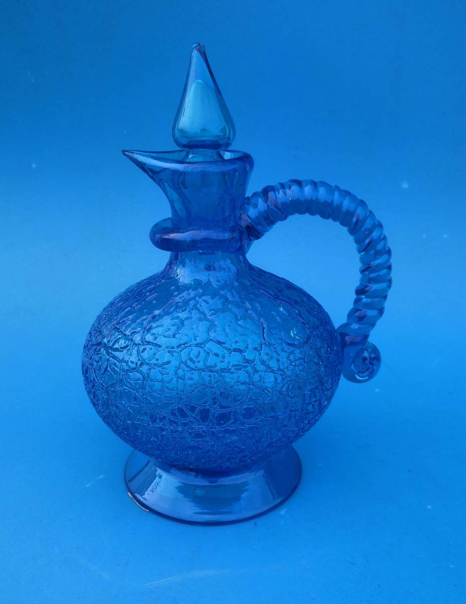 > 昭和レトロ 蓋付水指 琉球硝子 吹きガラス水差し 手作りハンドメイド 高さ29㎝ 幅19㎝ ブルー色鮮やかな色彩や風合いが美しい水指
