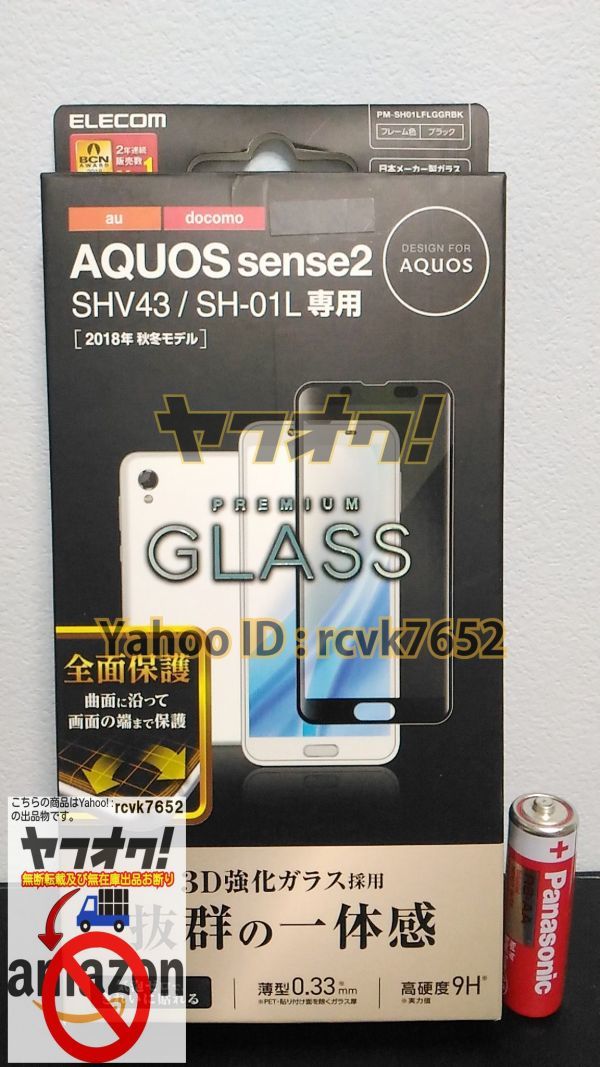- ヤフオク 送料無料 新品 エレコム AQUOS sense2 ガラスフィルム 飛散防止 かんたん SH-01L SHV43 SH-08M 画面全面保護 アクオス 3Oap-3