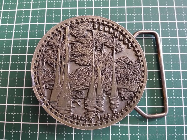 - バックル DELAWARE デラウェア州 景色 LEWIS BUCKLES CHICAGO ヴィンテージ ベルト 非鉄 真鍮 ブラス