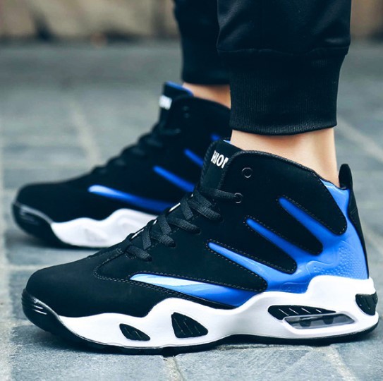 > 【23.5cm青】 レディース ハイカット エアー スニーカー バッシュ シューズ おしゃれ 青スニーカー ストリート HIPHOP ダンス 韓流 K-pop 1