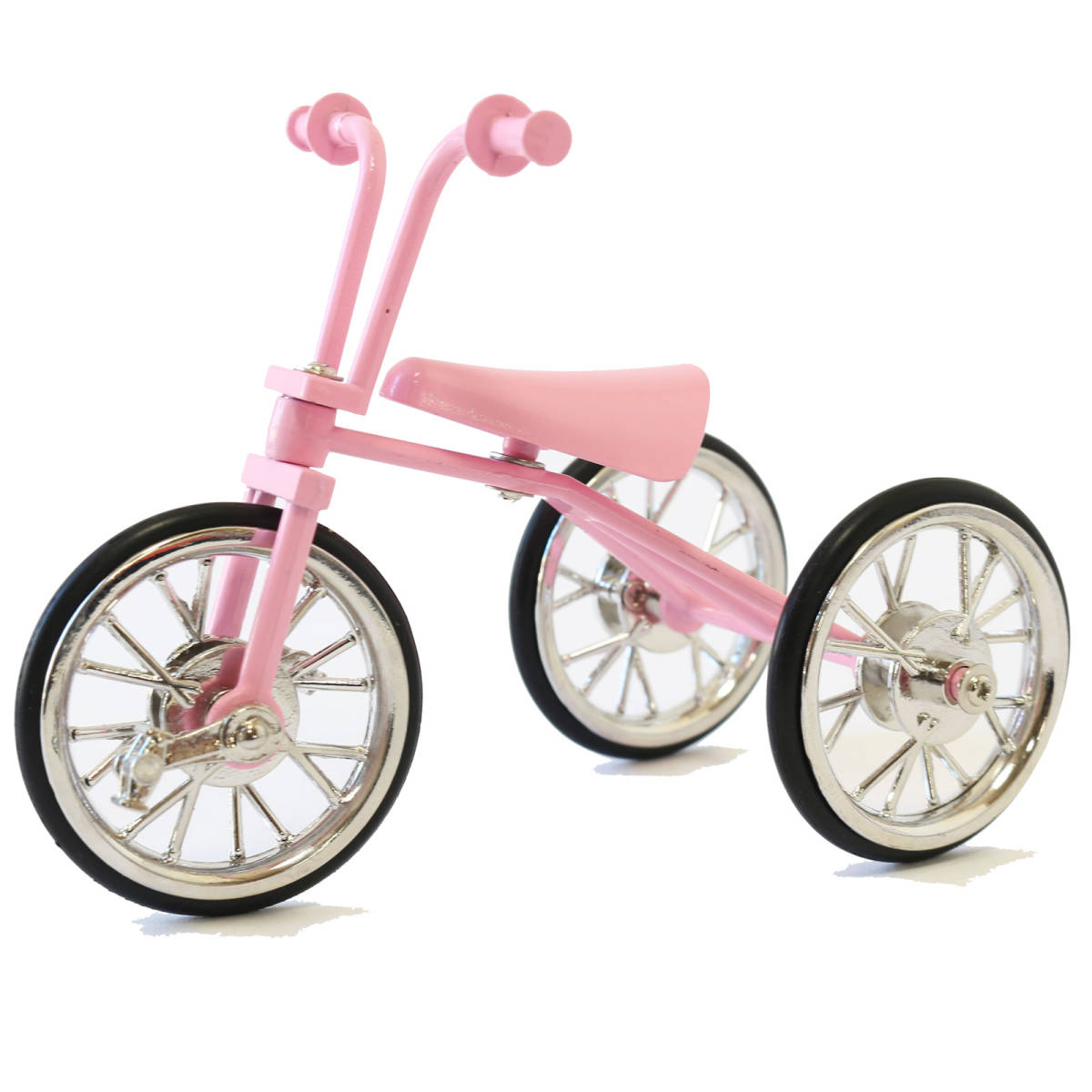 - 三輪車 三輪車ミニチュア 自転車置物 インテリア 可動式 昔ながらの三輪車模型 ドールハウス ミニチュア 1/10 車輪が動く ピンク