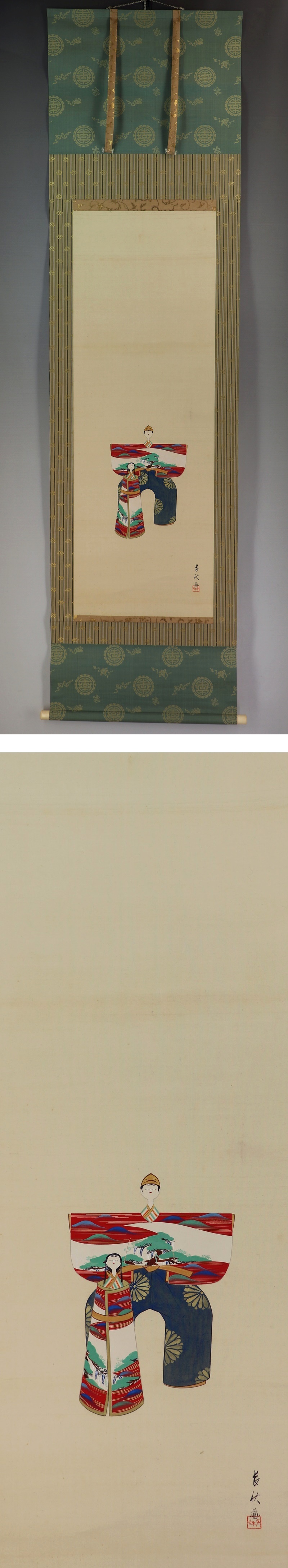 - 名品【真作】磯田長秋【立雛】◆絹本◆共箱◆掛軸 v10066