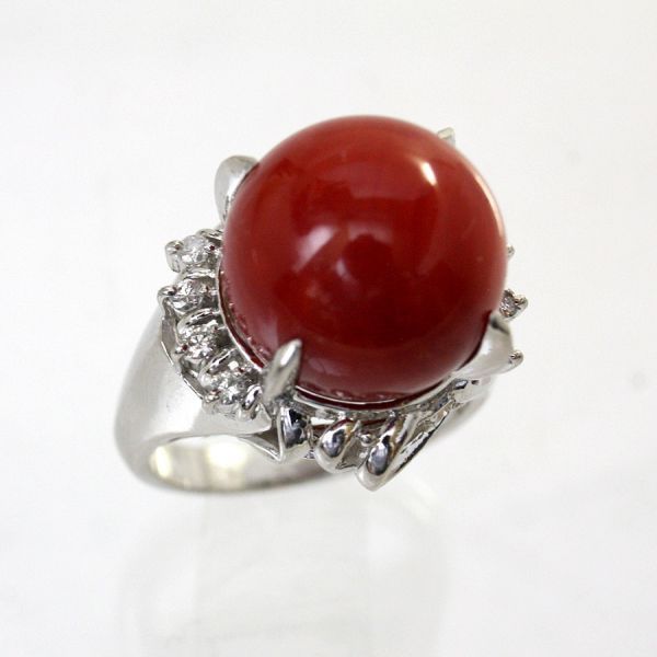 - ◎中古美品◎プラチナ 赤サンゴ 13.3mm ダイヤ 0.17ct リング 12号