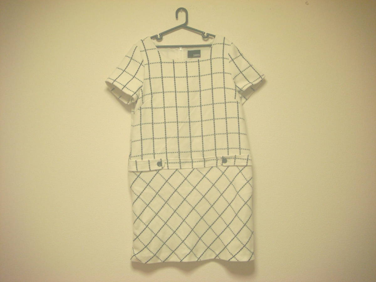 - 大きいサイズ HKロンドンワークス チェック柄 起毛 ツイード ワンピース ホワイト系 LL
