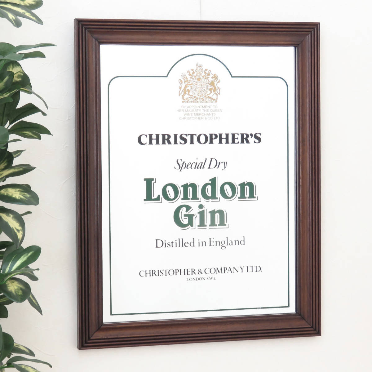 > ビンテージパブミラー/CHRISTOPHER’S London Gin(イギリス王室御用達)/店舗什器/ディスプレイ/インテリア雑貨/壁掛け鏡/内装/装飾/AL-2279