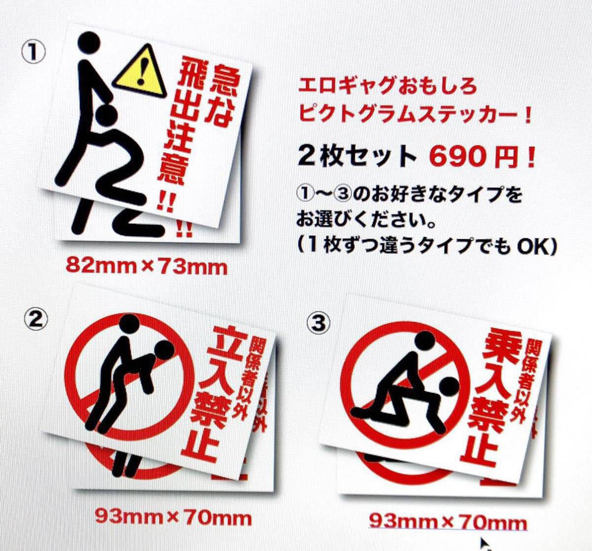 - 新品★おもしろエロギャグステッカー パロディ 立入禁止 乗入禁止 飛び出し注意耐水ピクト