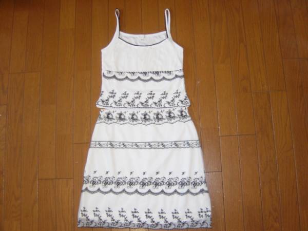 - 美品XOXOエックスオーUSA★刺繍&花レース 白シフォン ツーピース