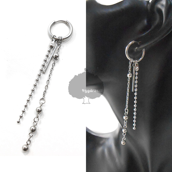> YGG★新品 多重 ボール チェーン ピアス シングル 片耳 ロング BTS 1個売り 男女兼用 ユニセックス シルバー 韓流 韓国 ファッション