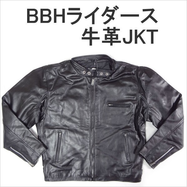 - BBH ライダース 牛革 レザージャケット スタンドカラー バイカージャケット ブラック 大きいサイズ
