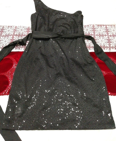 > 黒ラメネグリジェノースリーブタイトワンピースドレス Black lame negligee nosleeve dress