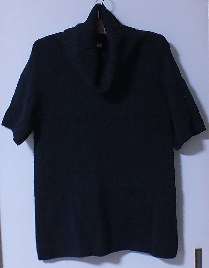 - 古着☆ユニクロ☆タートルネックニットセーター☆紺L半袖☆UNIQLO