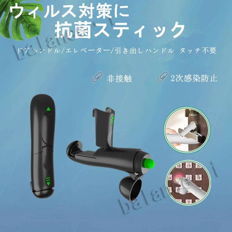 - ハンドスティック ブラック ウィルス対策 抗菌 スティック 非接触 二次感染防止 消毒 タッチペン YB
