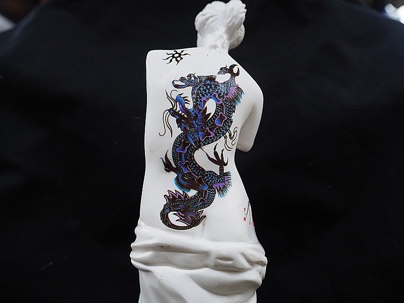 - 珍品 希少 ビーナス像 石膏石膏像風 タトウー 龍とバラの花 刺青