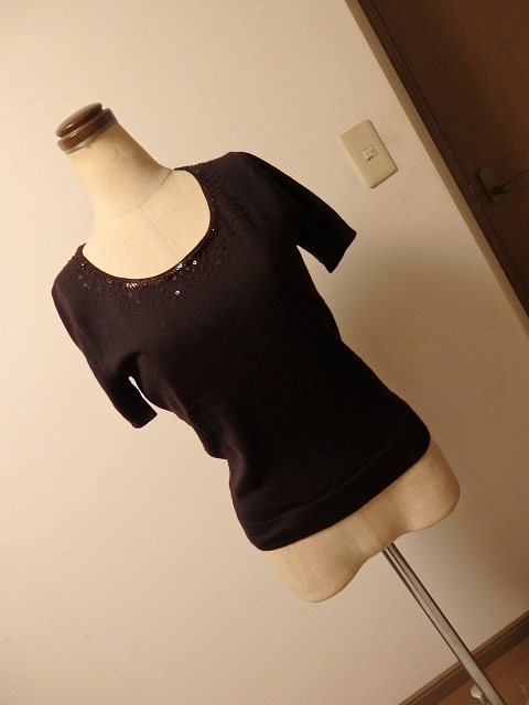 - 【美品】★23区 ビーズ&スパンコールつき 半袖セーター/40★