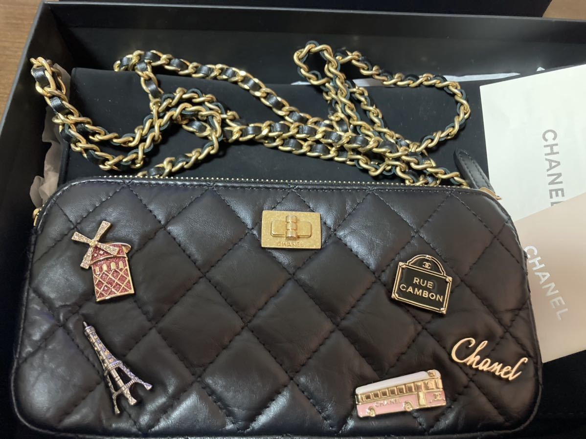 - 未使用 シャネル 2.55 チェーンウォレット チェーンクラッチ カーフ ブラック アンティークゴールド シワ加工 ウォレット 長財布