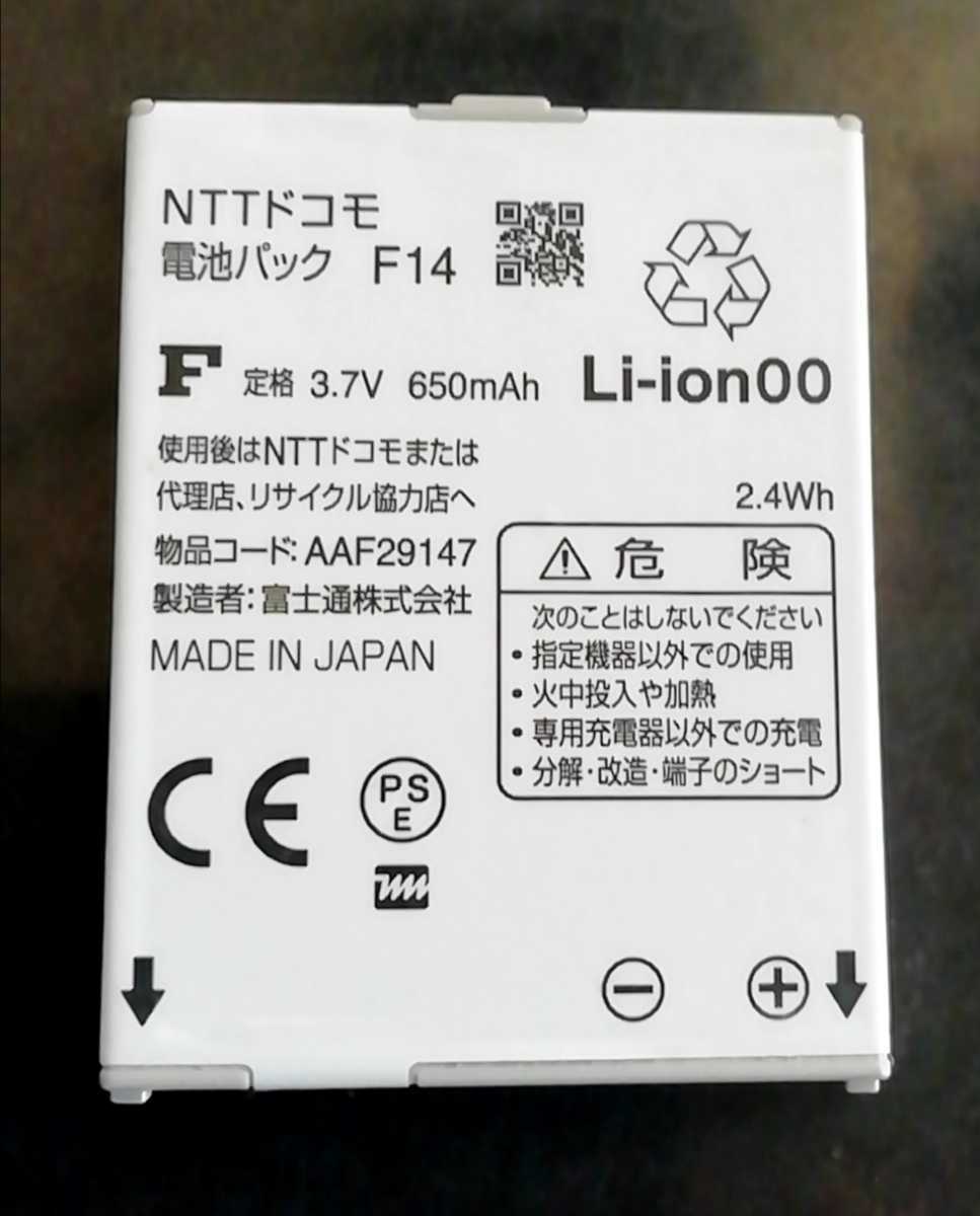 - 【中古・残り1個】NTTドコモF14純正電池パックバッテリー【充電確認済】対応機種(参考)F-04B