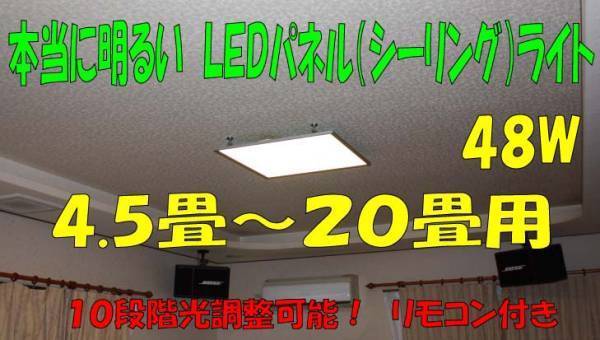- 6畳用 超薄型LEDシーリングパネルライト 60cm×60cm 調光式・調色式 (電球色~白色) 48w 天井・壁・床etc取付金具は3種類付属