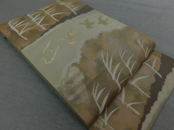 > 〔楽布〕P11117 服部織物製 こはく錦袋帯 lk