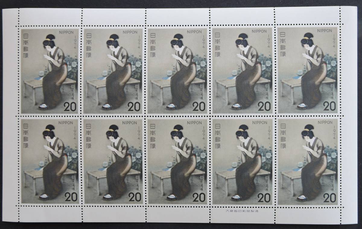 - 日本切手ー未使用1974年切手趣味週間20円*10枚 全面シート 1シート