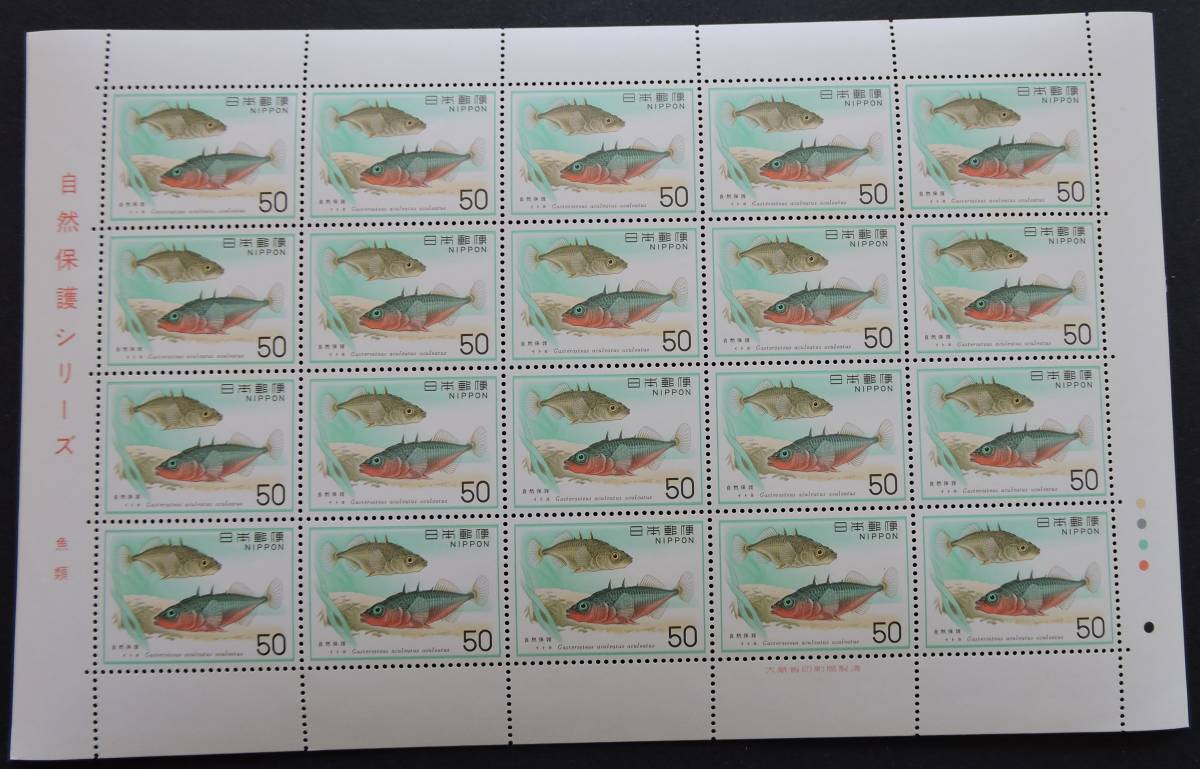 - 日本切手ー未使用1977年自然保護シリーズ第3集イトヨ50円*20枚 全面シート 1シート