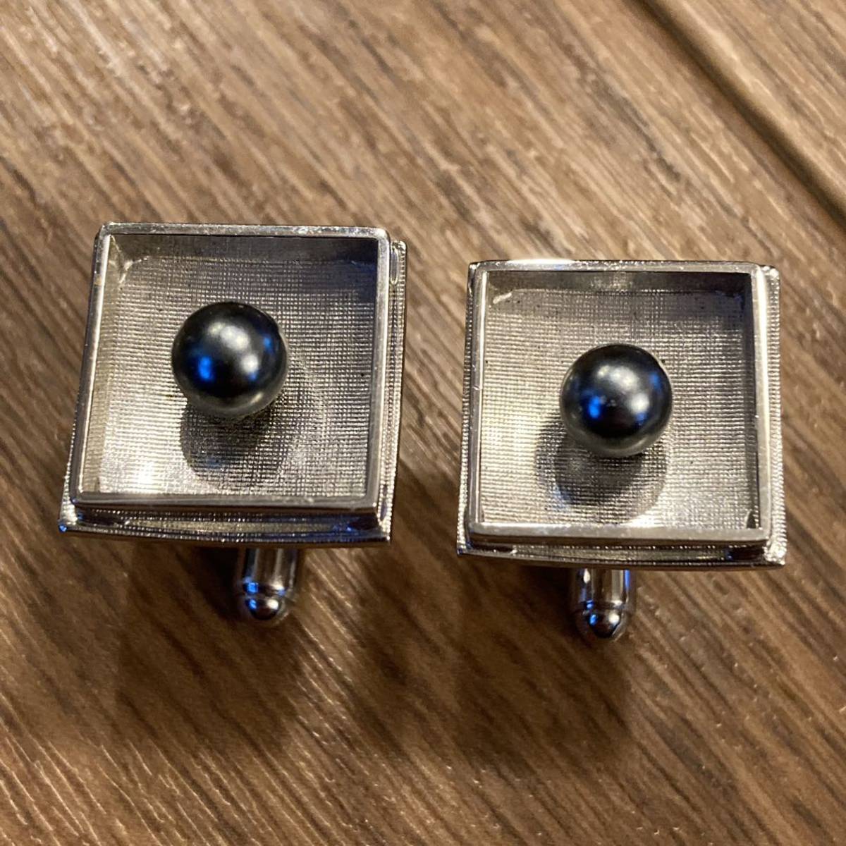 - 送料無料 US ヴィンテージ アンティーク カフリンクス 黒蝶貝 黒蝶真珠 パール