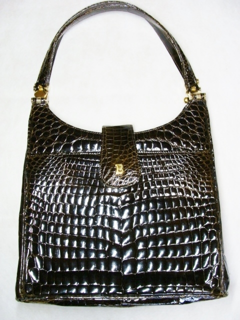 > BALLY バリー ◇ ロゴ マーク マグネット式 シャイニー クロコダイル ワニ 皮 革 レザー ハンド バッグ 鞄