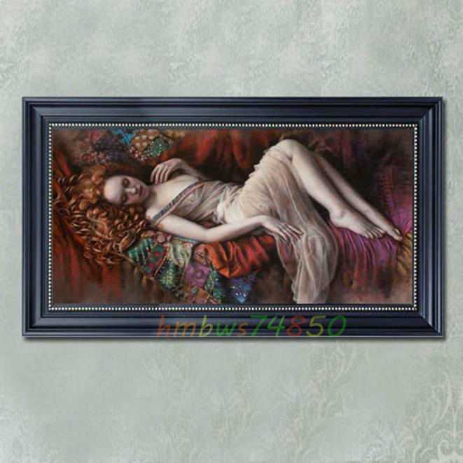 - ☆新品◆美術品☆ 官能美女 人物画 超セクシー美人画 油彩 絵画 寝室 装飾品 額縁付き 40cm*80cm
