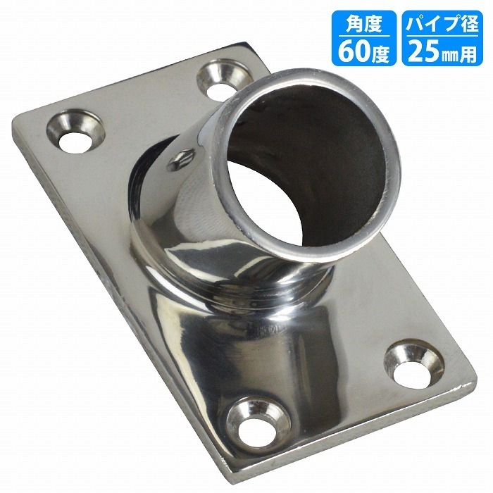 > パイプブラケット ステンレス 手すり 25mm 60度 パルピット取付金具 ボート 金具 デッキ アングルベース 船 船舶 パイプ固定 ベース
