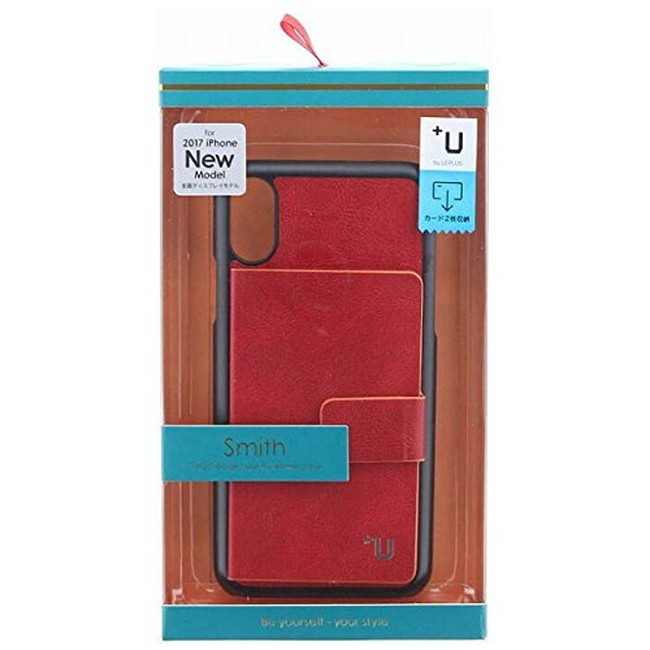 - 【在庫処分】 MS Products iPhoneX iPhoneXs (5.8インチ) 【+U】Smith/カード収納ポケット付PUケース【レッド】