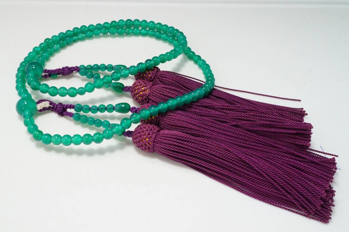- 早い者勝ち1点のみ【高透明度グリーンアゲート玉3.5mm念珠】 本連数珠 正絹頭付房 全宗派使用可能 仏具